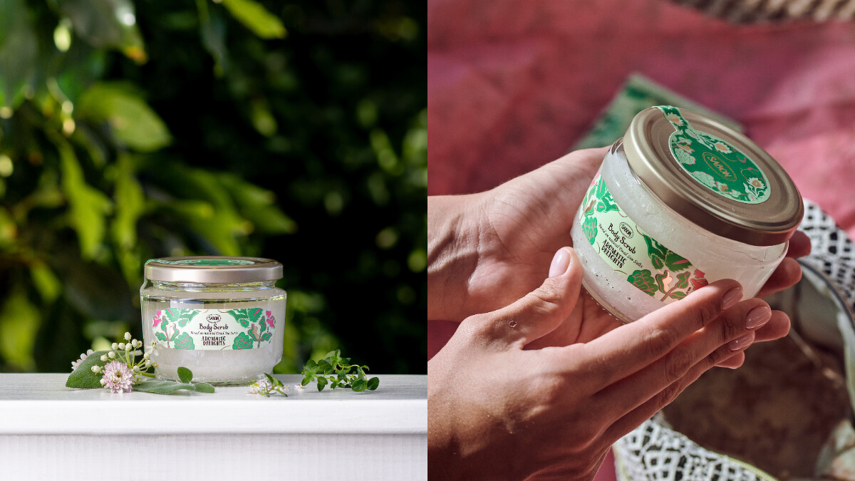 SABON將死海中蘊藏珍貴淨化能量的礦物質與微量元素療癒力注入磨砂膏中,可溫和去除角質、幫肌膚拋光,此時綠意柑橘香氣隨水氣洋溢蔓延,將整個浴室變成一座療癒的香草花園!