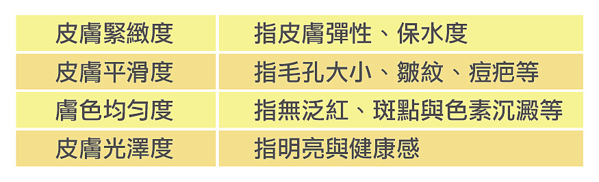 而什麼才叫好膚質?根據國際皮膚質量共識(International Skin Quality Consensus),影響膚質的四大關鍵指標(Emergent Perceptual Categories, EPCs):