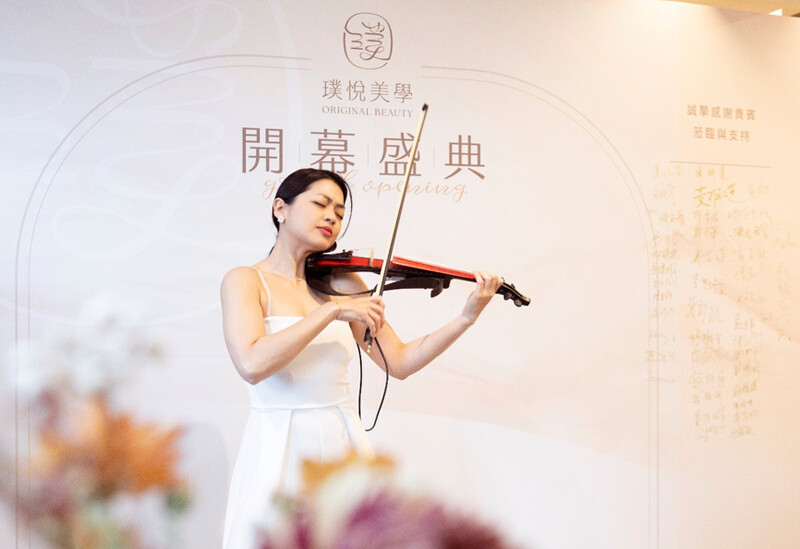 同時也邀請享譽國際的知名小提琴家康妮媚(Connie Mae)帶來現場演奏,悠揚樂音宛如晨光灑落,讓每一位來賓都沉浸在優雅與寧靜氛圍裡,將醫美場域昇華為一場藝術饗宴。