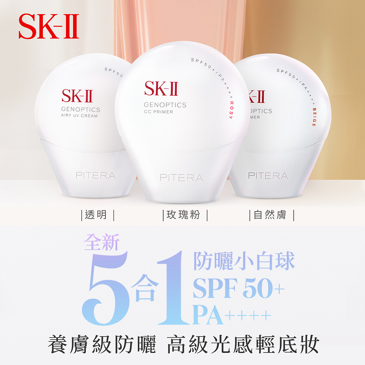 每天擦防曬+遮陽,結果膚色還是慢慢暗掉,但SK-II全新防曬小白球,顛覆想像!以「超清爽」、「超輕盈」的高係數防護力,成為今年日本女生心中「這個夏天不能沒有的防曬新品」! 不只是防曬,更是結合保濕、提亮、緊緻、UV防護、妝前打底五大功效的養膚型底妝,同時上妝兼保養,打破過去防曬與妝感之間的矛盾,讓妳從早到晚光感不間斷。