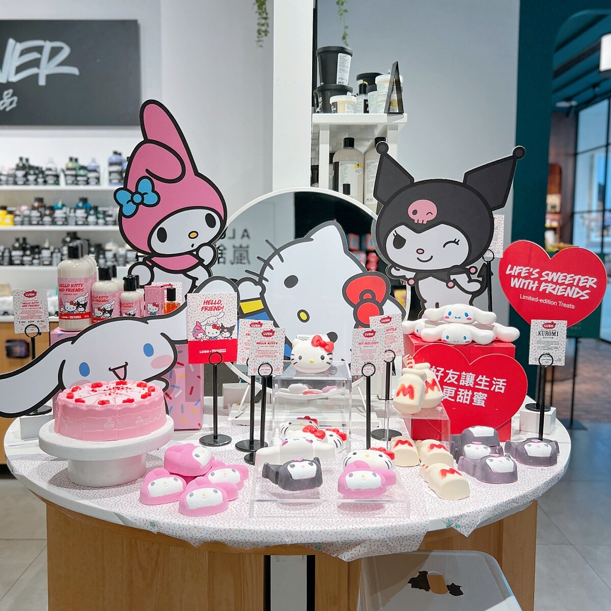 LUSH x Hello Kitty And Friends限定聯名系列2025/4/28在LUSH App獨家預售,5/6起搶先在台北三間門市(信義店、忠孝店、西門店)與官網開賣,接續於5/12 在其他門市開始販售。