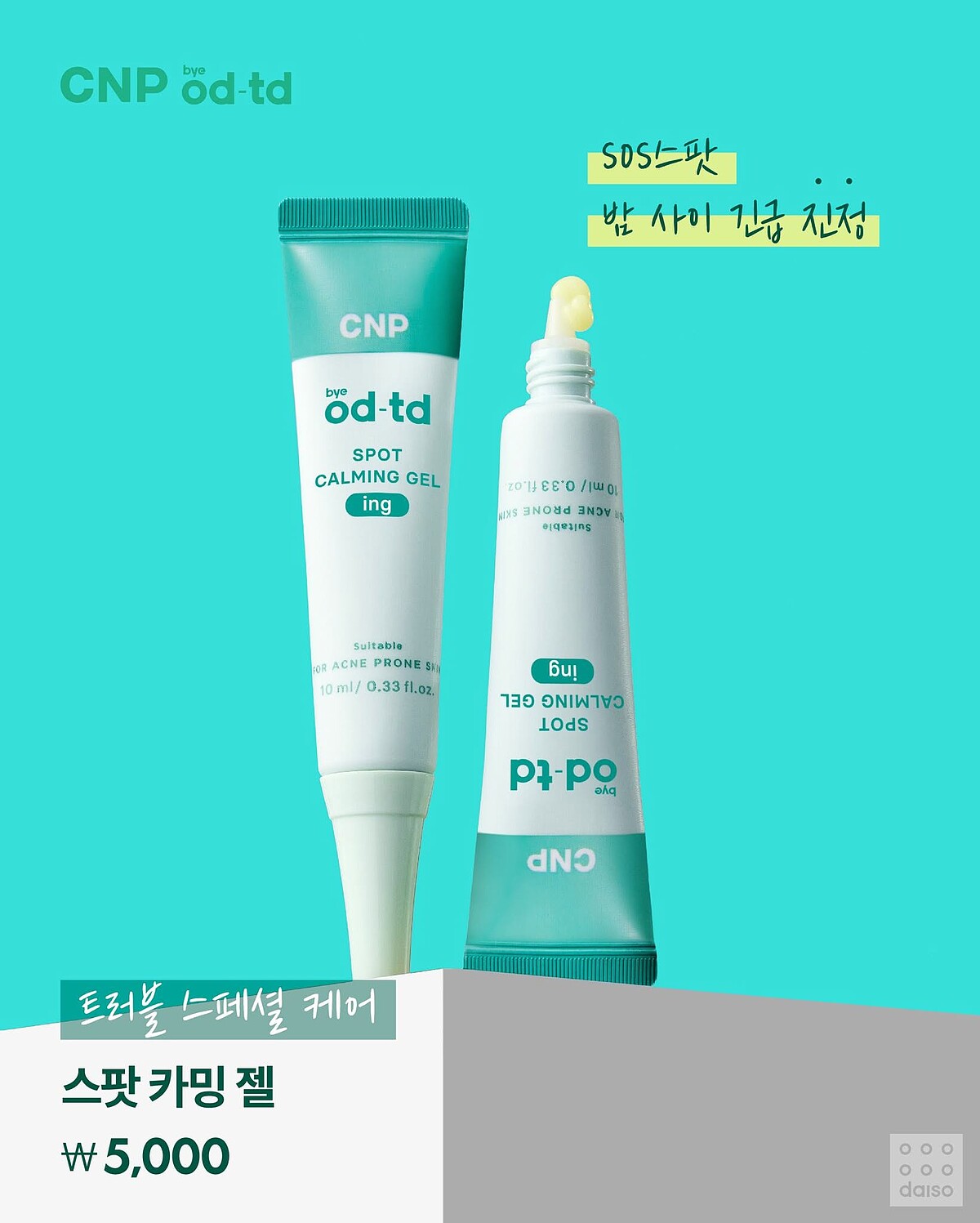 CNP bye od-td痘痘鎮靜凝膠的常規版本是15ml,官網原定價為23,000韓幣,而DAISO大創限定版則是推出10ml的容量,價格只要5,000韓幣,怎麼算都是在DAISO買比較划算,難怪成為暢銷品。
