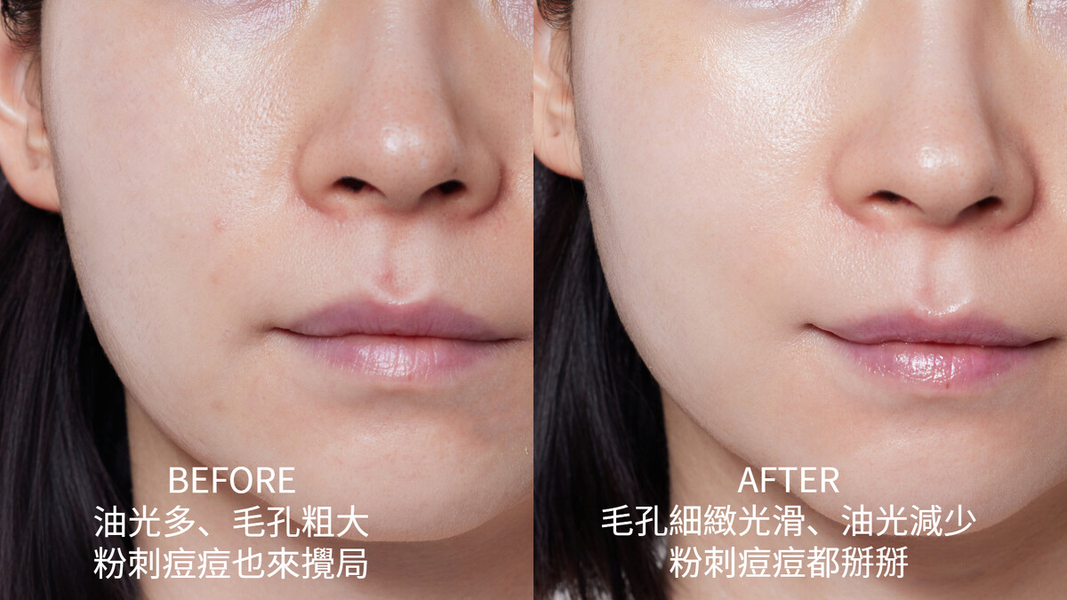 直接來看對比照最明顯,真的太有感了!原本M編肌膚T字油光多、兩頰鼻翼毛孔粗大,且最近粉刺痘痘也長不少,有夠煩惱。使用後,肉眼可見油光變少了、毛孔變得細緻又光滑,連粉刺痘痘也慢走不送,開心到直接原地灑花轉圈圈!!!!!!