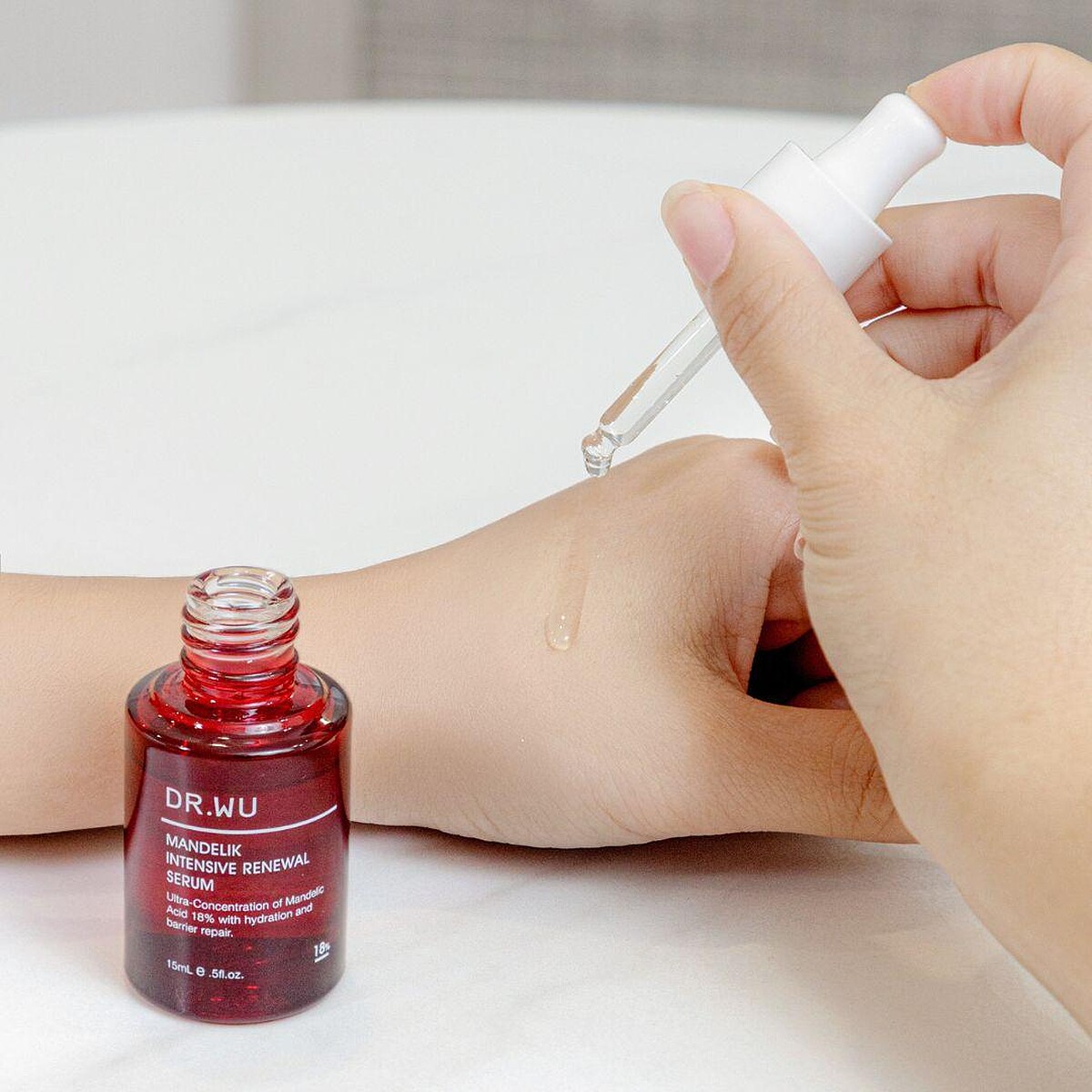 杏仁酸在醫美診所臨床應用超過20年,以杏仁酸煥膚至今仍是診所長年不敗經典煥膚療程,亞洲皮膚科權威吳英俊醫師,以超過45年皮膚科臨床經驗和20萬案例研究,打造業界首創的居家保養杏仁酸煥膚保養方案!DR.WU推出8%、18%不同濃度選擇,無論是毛孔、粉刺、痘痘、痘印、暗沉都能快速改善!
