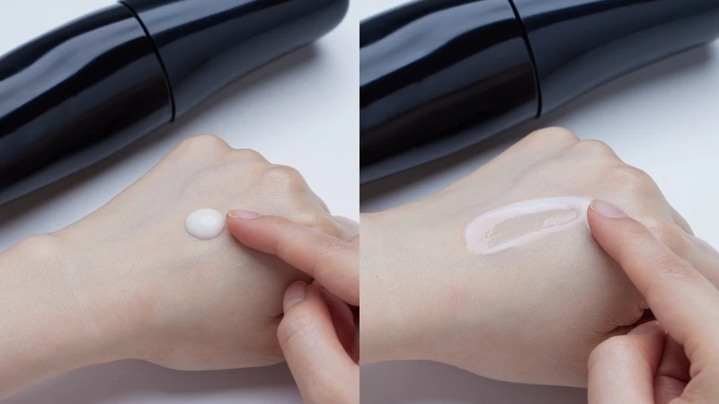 輕盈水乳狀質地、絲緞般滑順不油,一推開好吸收且不黏膩、不厚重,不用擔心會悶黏。