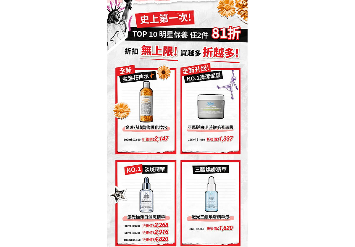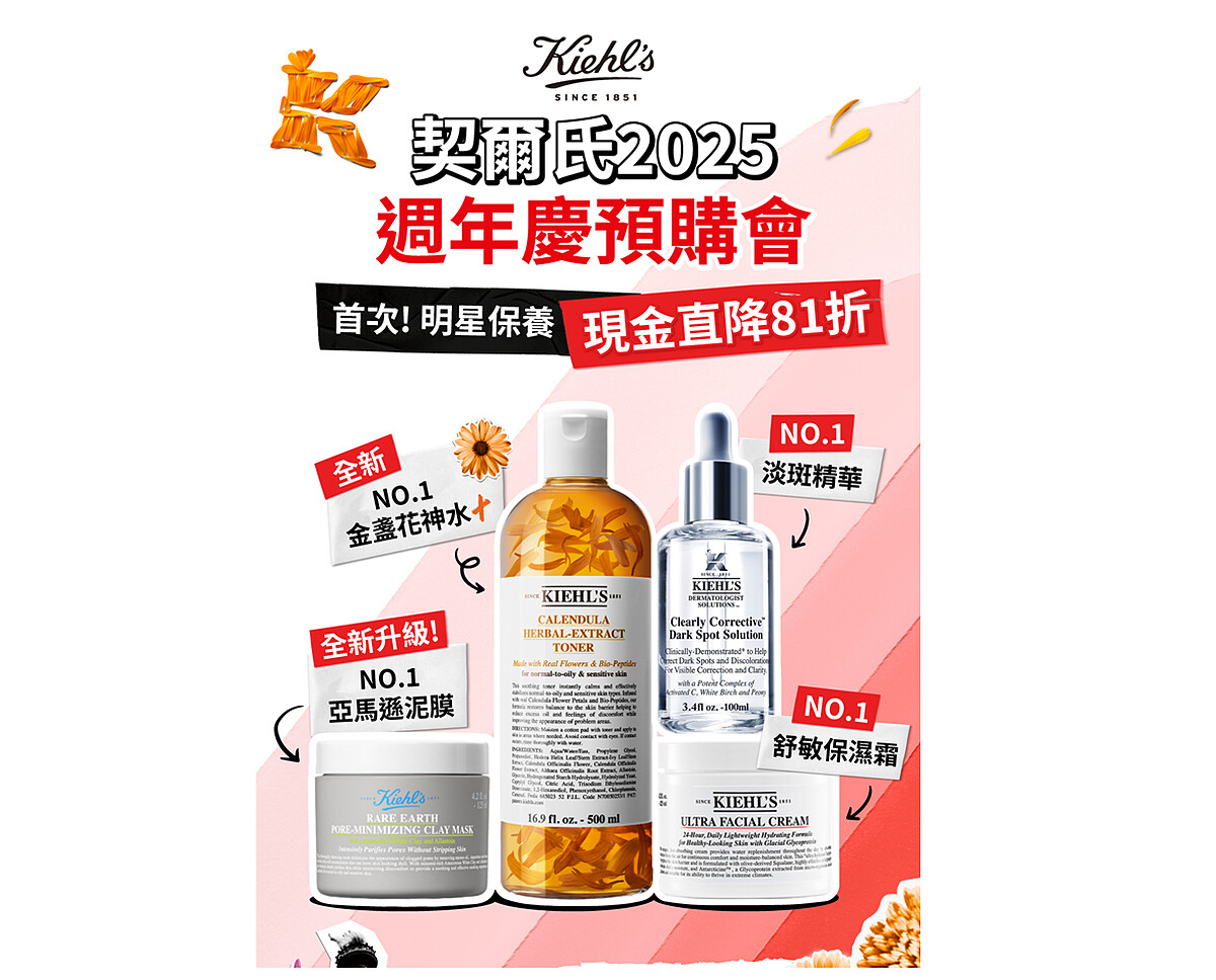 Ok講到囤貨,囤貨不等於大撒錢!聰明如我們(與正在閱讀的姐妹們),快趁現在!保養界的年度盛事要來了--【週年慶】!小編已準備好了,這次最讓人心動的,絕對是Kiehl’s契爾氏【金盞花精華修護化妝水】全面升級登場,500ML將會直接在預購會首發,guess what! 一次入手兩瓶還會直接下殺81折!買新金水想搭其他的?也可以搭配契爾氏Top 10明星產品,任選2件明星商品直接81折!姐妹們這個價格千萬不能等,小編就說到這!