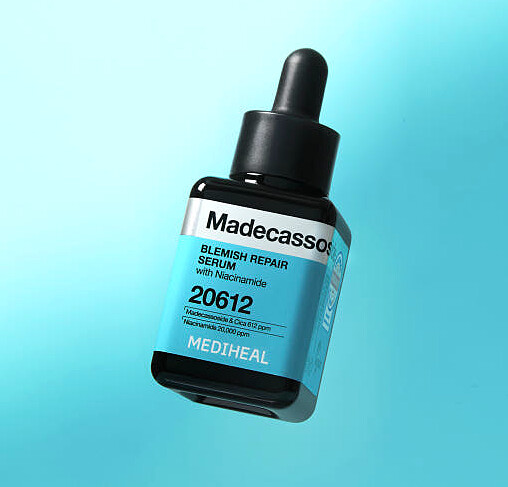 以面膜及濕敷棉片出名的MEDIHEAL推出的這款淡斑精華(Madecassoside Blemish Repair Serum/메디힐 마데카소사이드 흔적 리페어 세럼)含有20,000 ppm高含量的菸鹼醯胺,並含有612 ppm的超純度羥基積雪草苷及積雪草萃取。訴求能幫助減少黑色素沉澱、讓膚色更均勻,還能調節油脂分泌,使肌膚光滑,更具有舒緩鎮靜的作用。