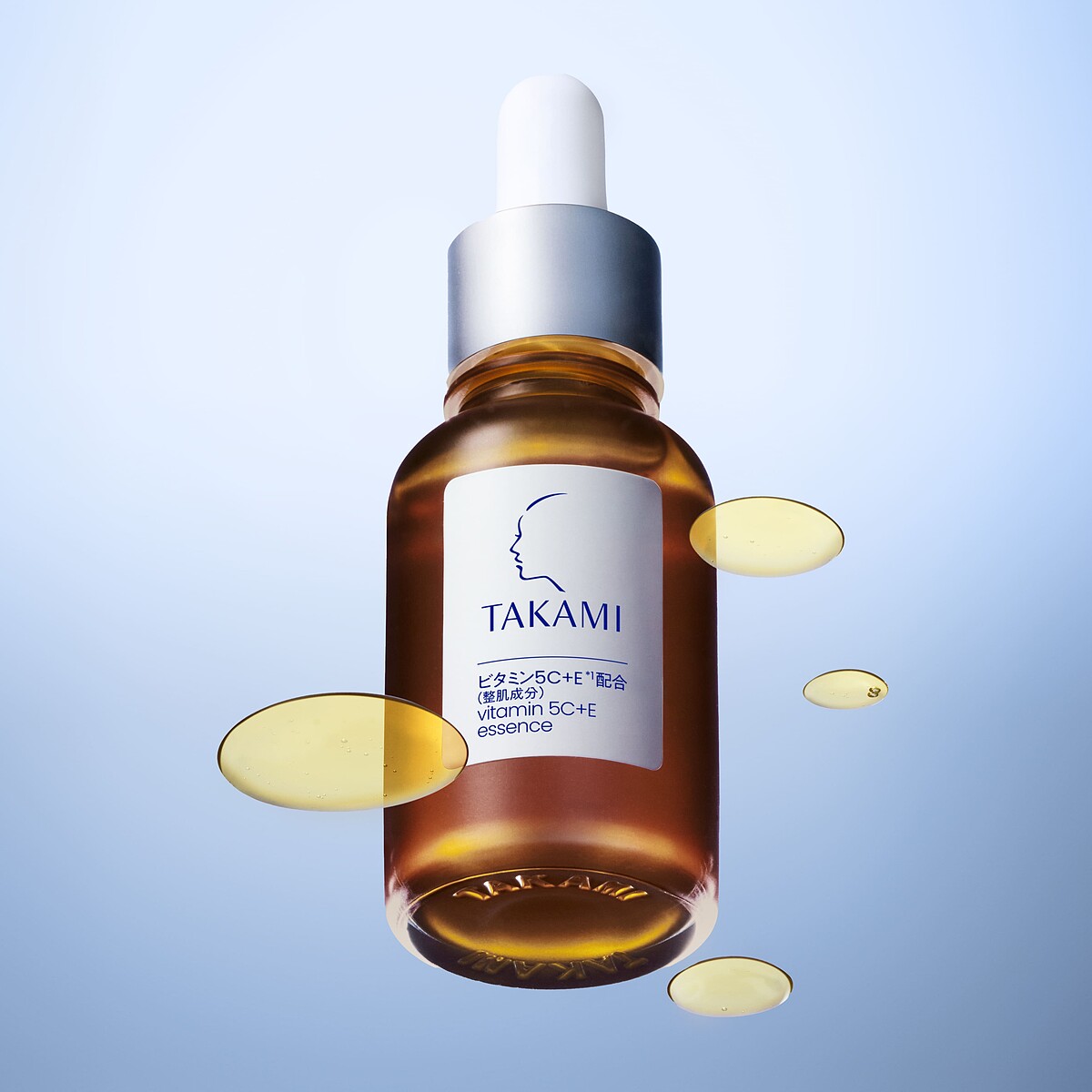 什麼是5C+E? 答案是一次給你五種維他命C+維他命E!根本每一滴都像黃金萃取,呵護肌膚的成分絕對要精緻又有效!TAKAMI 5C+E精華,打造你越睡越美的時光!