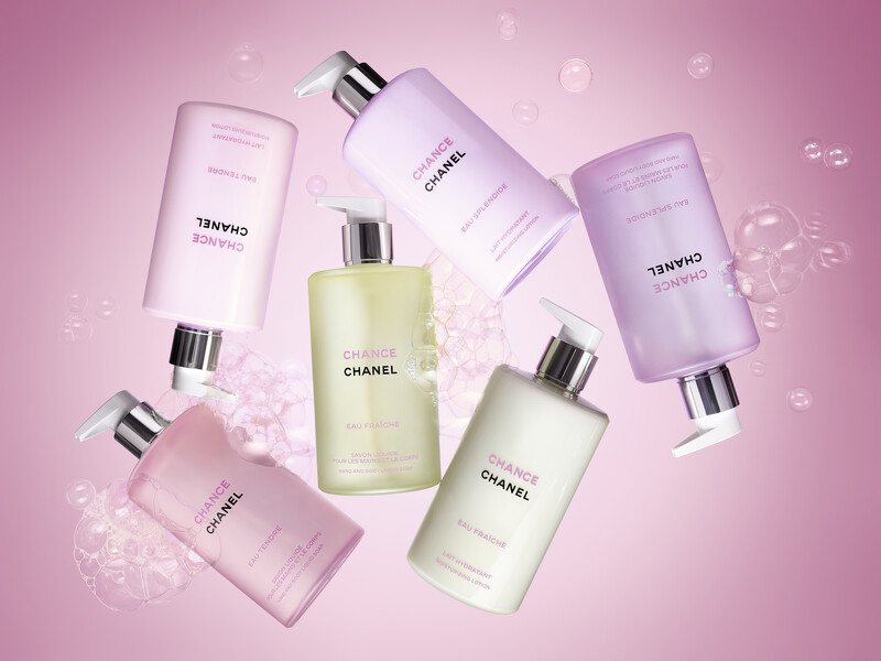 香奈兒 CHANCE 系列讓香氣自然融入每日保養流程。全新身體乳、身體香氛精油於1月6日起在香奈兒全台專櫃及線上美妝店、LINE官方旗艦店上市。全新紫色霓幻沐浴露與綠色輕盈沐浴露將於3月1日登場。