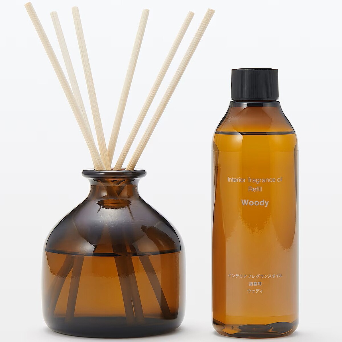 MUJI無印良品的空間芬香油在瓶身設計上改採深褐色的透明玻璃瓶,簡約設計能自然融入各式居家氛圍。