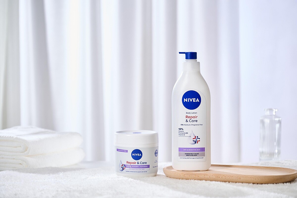 妮維雅「極潤無香修護系列」無香料、無酒精****、無防腐劑,純淨配方能一瓶完成全身保養,化繁為簡給肌膚最單純的保濕修護,溫和到敏感肌也能安心使用!