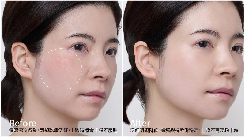說了這麼多,M編來實測,前陣子氣溫忽冷忽熱,兩頰乾癢泛紅明顯加重,上妝時還會卡粉不服貼。連續幾天依照「面膜密集補強、精華全臉修復、萬用霜局部加強」的保養順序後,泛紅明顯降低,膚觸也變得柔滑穩定,上妝不再浮粉卡紋。原本反覆不適的膚況,在一天之內就感受到明顯改善!