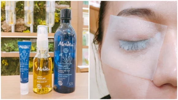追劇追到眼睛酸澀,就用Melvita矢車菊亮眼滾珠凝露、矢車菊花粹來幫雙眼好好清涼舒壓一下