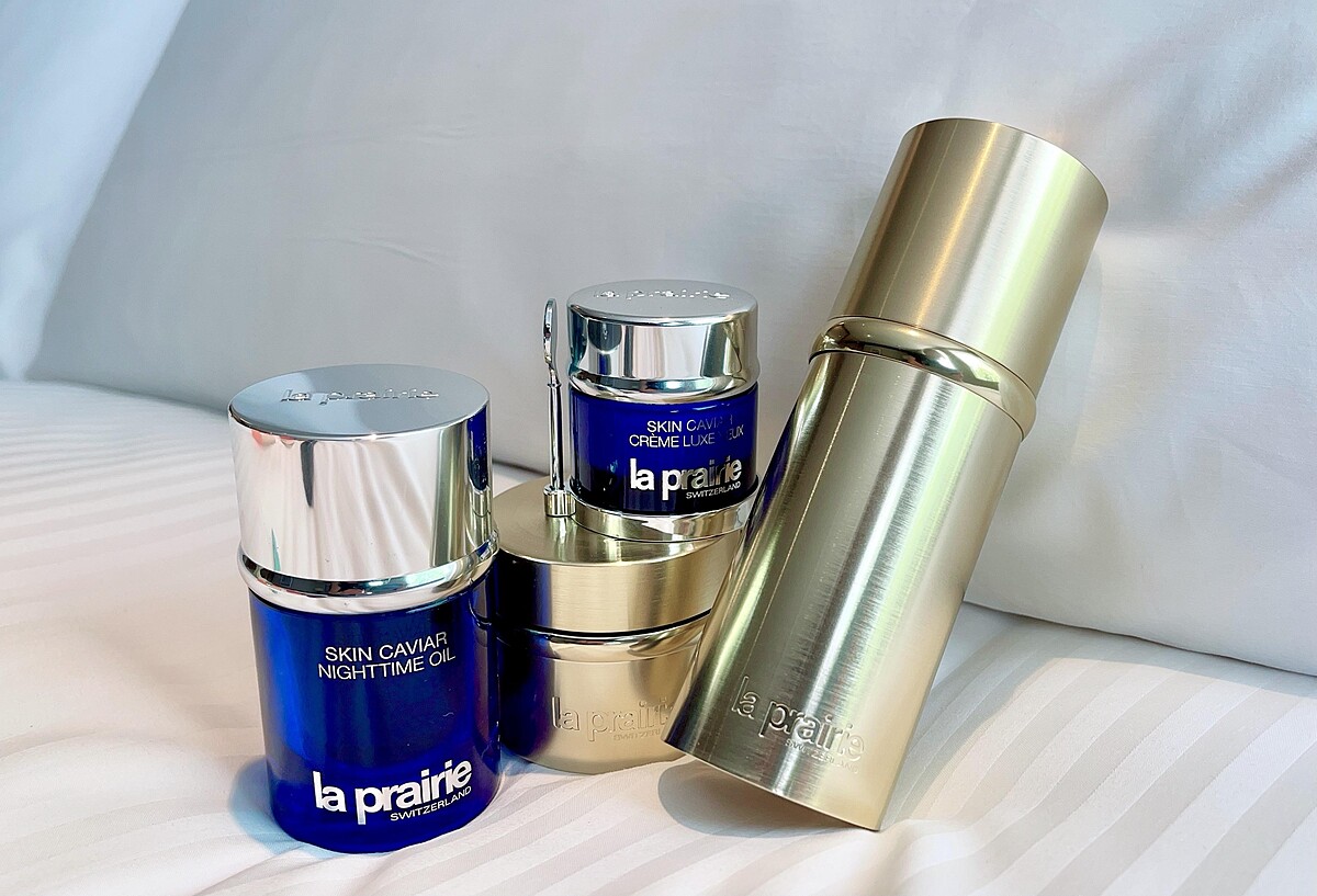 白天清潔過後,我會用「 La Prairie 極緻金燦精華」先按摩全臉,再使用「La Prairie 極緻金燦眼霜」,夜晚時則使用「 La Prairie 魚子美顏夜間緊緻精華油」,這罐油改變了我對美容油的看法,它不但滋潤且十分好吸收,用完隔天馬上改善肌膚疲憊感。