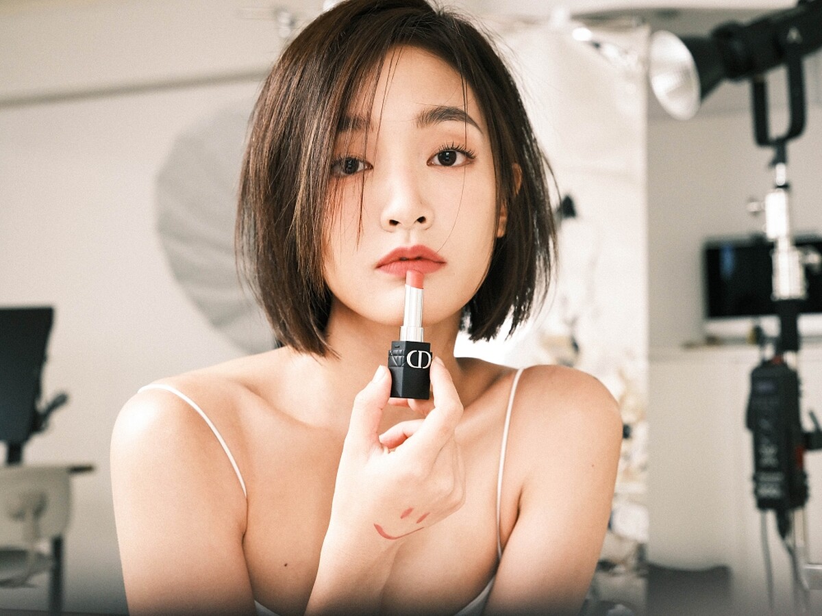 先前喜歡的口紅顏色是像迪奧超完美持久唇膏#330的奶油蜜桃色,「帶點奶油色的感覺,會讓嘴巴看起來很像甜點」。