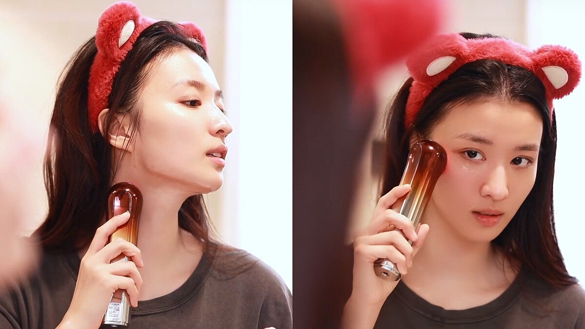 工作忙碌無法經常抽空去做臉,因此王楚然很喜歡在晚上保養時利用「美容儀」來加強呵護肌膚,特別是針對下顎線、蘋果肌、眼周、額頭這四個部位,每個部位按摩四到五次,可以幫助緊緻肌膚並減少紋路產生的機會。