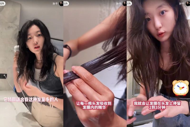 孫千大多時候的髮型都是自然捲的長髮,因為自然捲的關係,頭髮又多又蓬,不想要頭髮毛躁更要好好保養,平常選用高速的吹風機可以省下時間,還有髮膜也不能忘,因為髮質較粗所以可以使用較濃稠的髮膜,抹護髮時一定要好好塗抹均勻,讓每一根頭髮都吸收到精華,停留兩到三分鐘後再沖掉,孫千會天天使用髮膜,大家可以依照自己的需求調整。