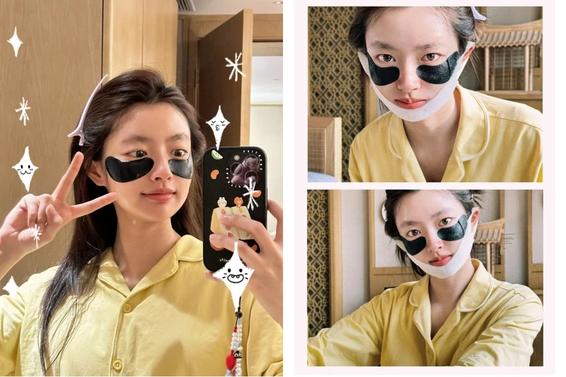 徐若晗偶爾還會曬出自己敷面膜的照片,有黑眼圈困擾的她主要是敷眼膜,同時再加上拉提面膜,一舉兩得,養出淨白的小V臉,敷面膜的頻率因人而異,但建議一週可以保養一次,長期累積才能見效。