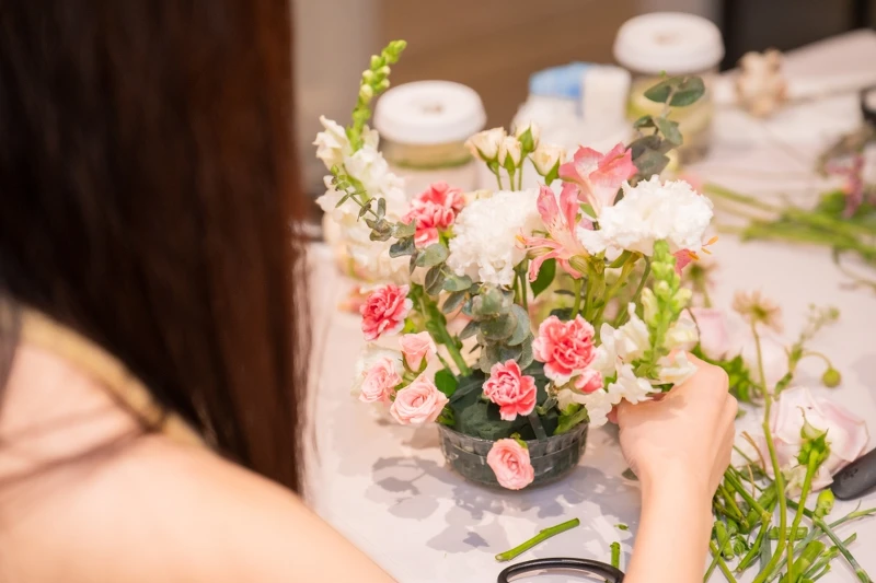 活動以花藝課開啟,空間特別噴灑鬆開身心的芳香精油VIE ARÔME的「豐收季節」。手作的盆花最後也在擴香花瓣上再點上「一夜好眠」、「冥想和諧」精油,不僅滿足視覺饗宴,也香氣迷人。