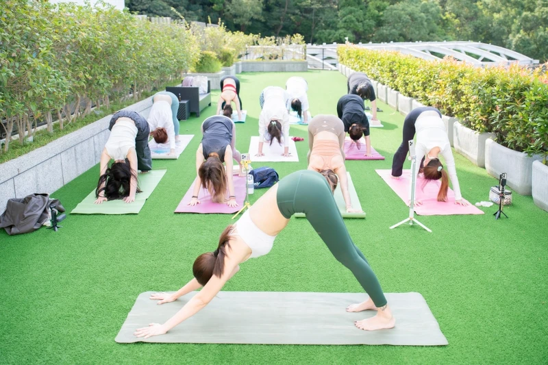 第二天的「早晨活力瑜伽」,由活動主理人何妤玟帶領大家透過緩慢的瑜伽流動,伸展僵硬的身體。在新北投的山林間,透過呼吸吐息,將內心深層的負面情緒一一排出。