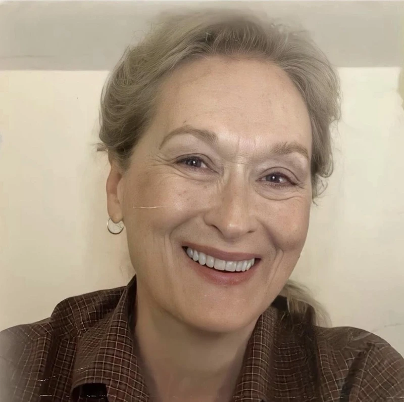 在這個幾乎人人都追求凍齡的年代,梅莉史翠普卻選擇一條完全不同的道路。她從不迴避鏡頭下的皺紋、鬢角的白髮,反而認為這些是她人生故事的一部分,值得驕傲而非隱藏。她曾說過:「我不想看起來年輕,我想看起來像自己。」而這是她對美的信仰!與其追求時間的逆行,不如優雅地與它共舞,對比社群媒體的濾鏡文化,梅姨的真實與坦然反而成了一種新的風格指標。