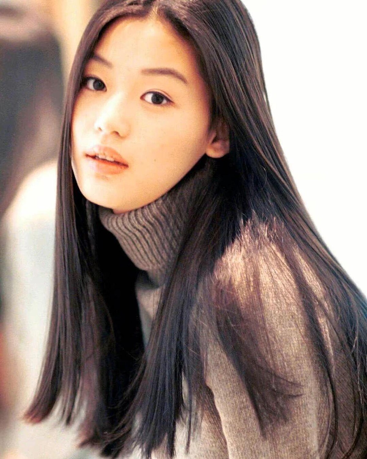 全智賢早期最經典的造型絕對是黑長直莫屬,配上素雅毛衣,展現清新自然的氣質簡直不要太美!在2001年主演電影《我的野蠻女友》不需要任何修飾,就足以成為無數人心中「初戀」的最佳代表。