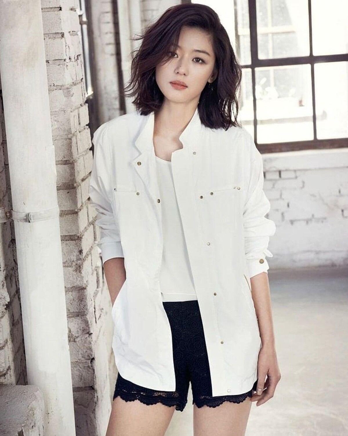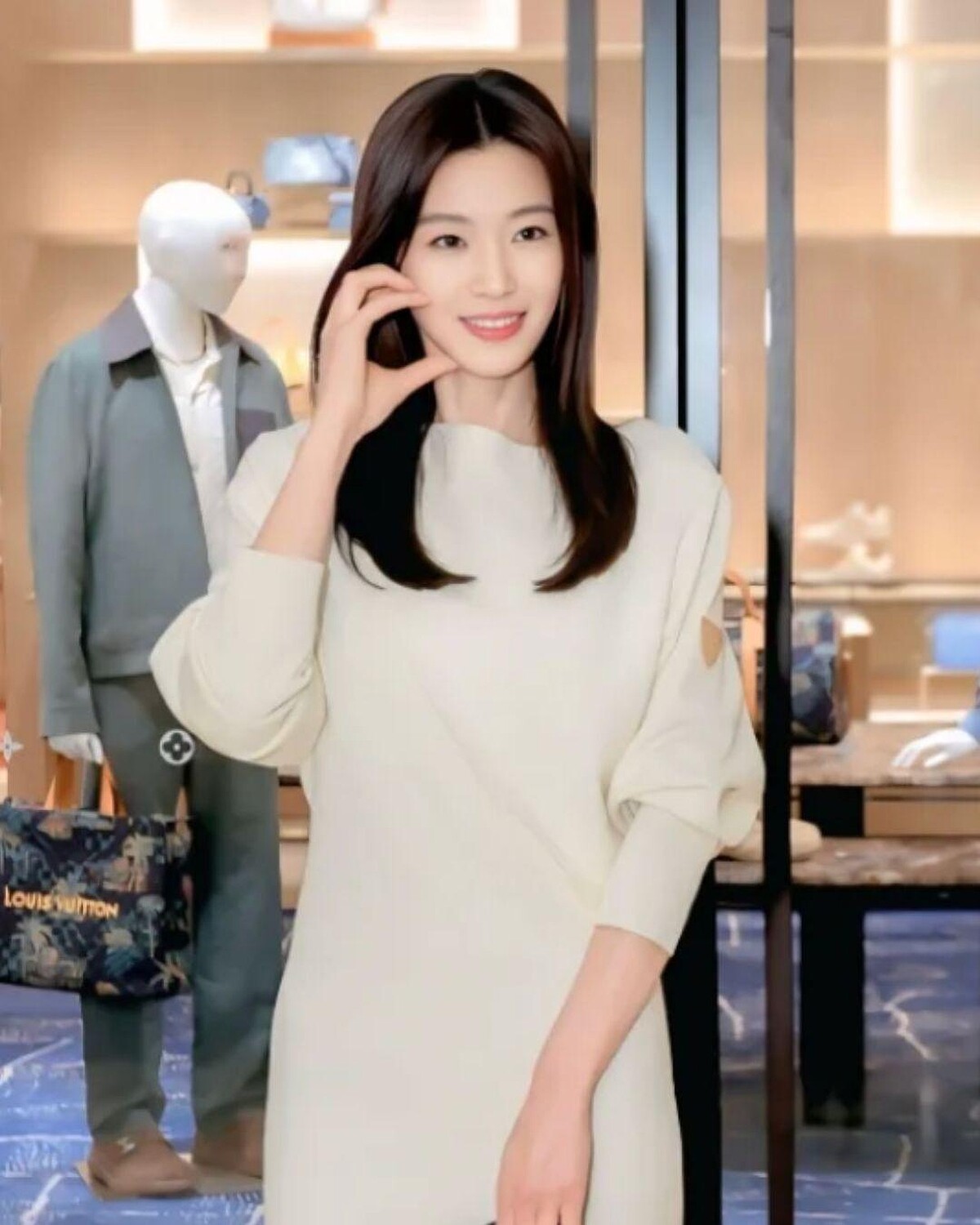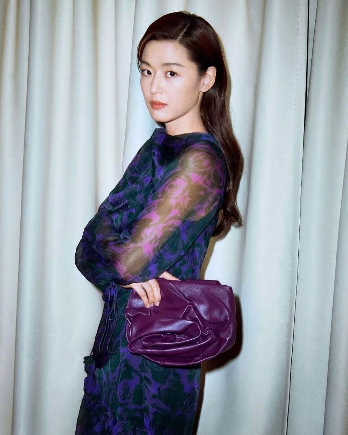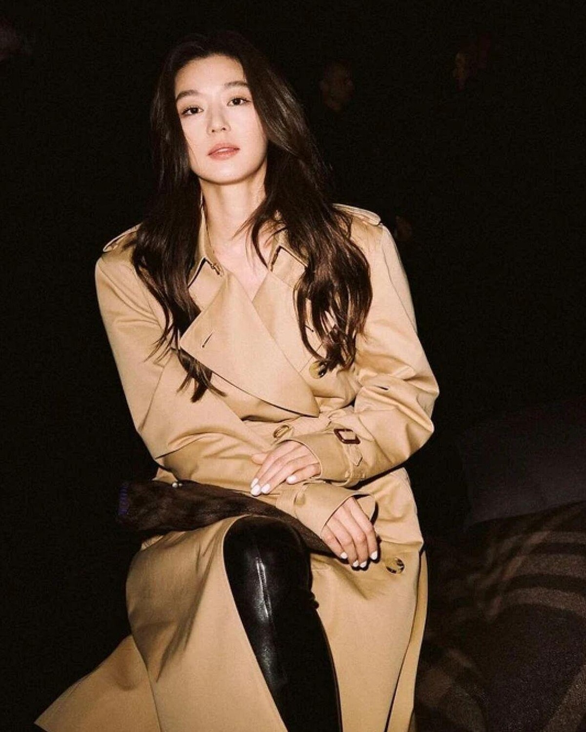 柔和的長波浪髮型讓她展現優雅大女人姿態。搭配風衣或西裝外套,都能散發知性與浪漫的氛圍,是全智賢最經典的「女神造型」。