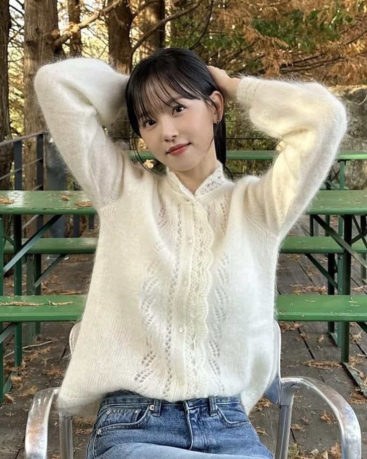 不同於她常見的知性長直髮,偶爾出現的妹妹頭劉海+中高馬尾,讓姜漢娜瞬間年輕好幾歲。齊瀏海修飾了額頭比例,搭配中高馬尾的蓬鬆度,不只拉長臉型,也增添一種元氣少女的氛圍。這樣的造型比起她平常的優雅風格,多了一份俏皮與活力!