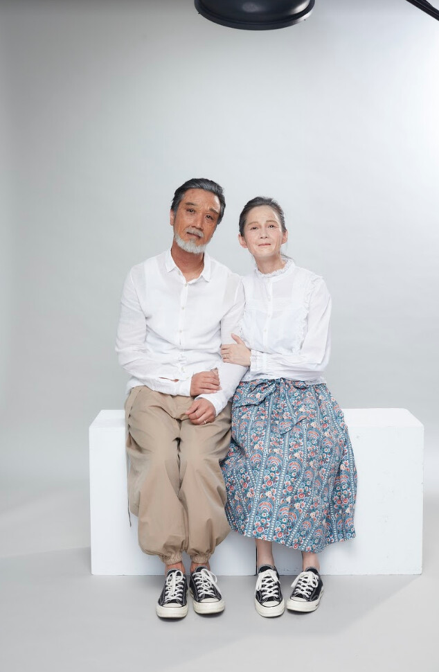 這次光是化老妝+卸老裝就用掉4小時只為了拍攝10分鐘的老妝照片。攝影師江民仕也說:「大家拍婚紗都是要美美入鏡,第一次遇到要拍老人樣子的!」拍攝婚紗照時,身兼髮型師的新郎不時從手中變出尖尾梳幫簡嫚書調整髮型,畫面相當可愛也幸福洋溢。