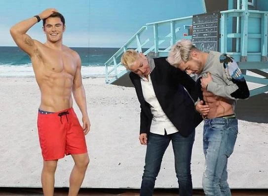 推出Youtube新頻道「Gym Time w/ Zac Efron」的Zac,日前和好友妮娜杜波夫Nina Dobrev一塊進行健身訓練時,再度展現了傲人龜殼腹肌,不僅如此,在《艾倫秀》上,更有一尊他在《海灘救護隊》時的半裸肌肉蠟像,隨後他也掀起自己的衣服作比較,露出的結實腹肌甚至超越蠟像,只能說柴哥真的很猛啊!
