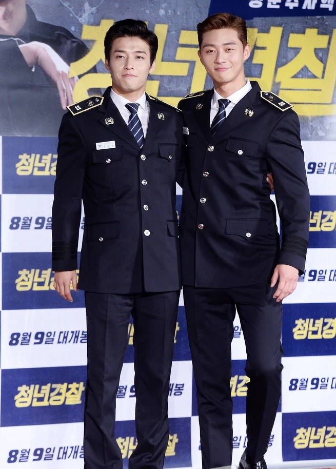 和朴敘俊合演《菜鳥警校生》,穿上警察制服也很帥。