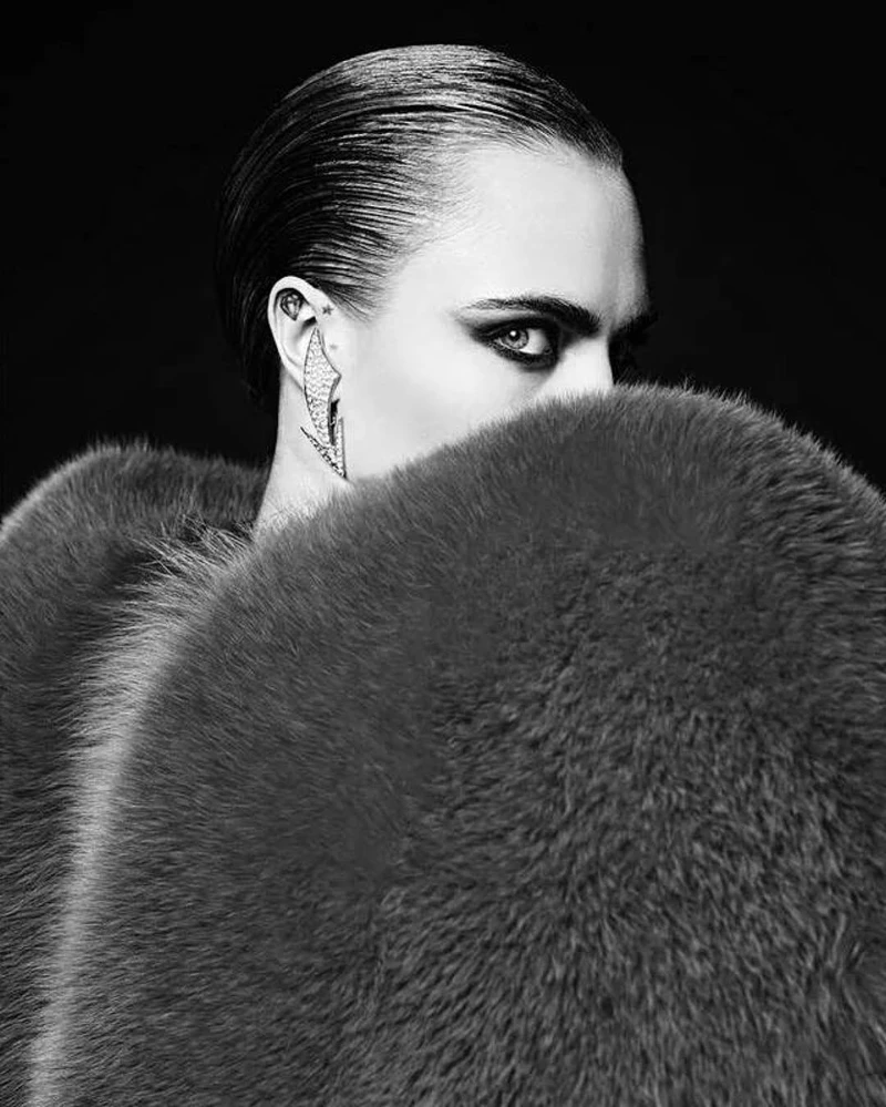 我們不妨細數這十年間的卡拉演進史:一開始,她是足以銷出千支眉筆的屏息面孔(這對招牌濃眉大概是時尚界最經典的眉毛之一),她是席捲時尚界的超級模特兒,她是社群媒體上的潮流領導人。也有一段時間,她是報章頭版的派對女孩,然後,她是嶄露頭角的女演員,她是溫斯坦的指控者,她是社會議題的擁護者(心理健康、LGBTQ 權利、環境意識,這些議題於她因為切身所以鄭重)。別忘了,不愛牌理出牌的她還有這些驚喜:一本青少年小說、一首與菲董的單曲。「已經有太多人向我說,『妳才26歲?怎麼彷彿出道幾十年了』,真是可怕呀。」