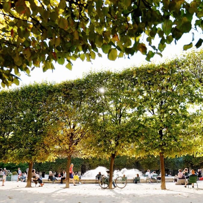 位置就在市中心Pyramides地鐵站附近,和羅浮宮只差一條街,另一個方向走一下就到非常有名的薇薇安拱廊(Gallerie Vivienne)。外面人聲鼎沸,但是裡面總是非常安靜舒服,跟一般巴黎開放式的花園不同的是,周圍一圈建築及拱廊讓這個地方有典型巴黎建築的中庭內院感覺,多了一點隱私和神秘,大概也是觀光客少很多的原因之一。廣場部分比較熱鬧,花園區就非常寧靜,不用像到杜樂麗花園或是盧森堡公園一樣得搶椅子,總是可以找到一個安安靜靜的角落和法國人一樣野餐聊天、曬太陽看書。而因為有一圈怎麼拍怎麼美的時髦拱廊區,除了常常有很多穿著時尚的法國人在這裡漫步逛街,運氣好還可以碰到雜誌或是廣告的拍攝團隊。