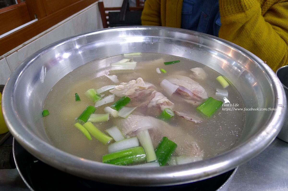 「一隻雞」這道料理,是端上一鍋清湯,裡面放了一隻生雞(店家已事先做處理),店員直接在你面前用剪刀把雞剪成一塊塊好入口的大小。水滾後,等個8~10分鐘,就成一鍋清甜鮮美的雞湯。