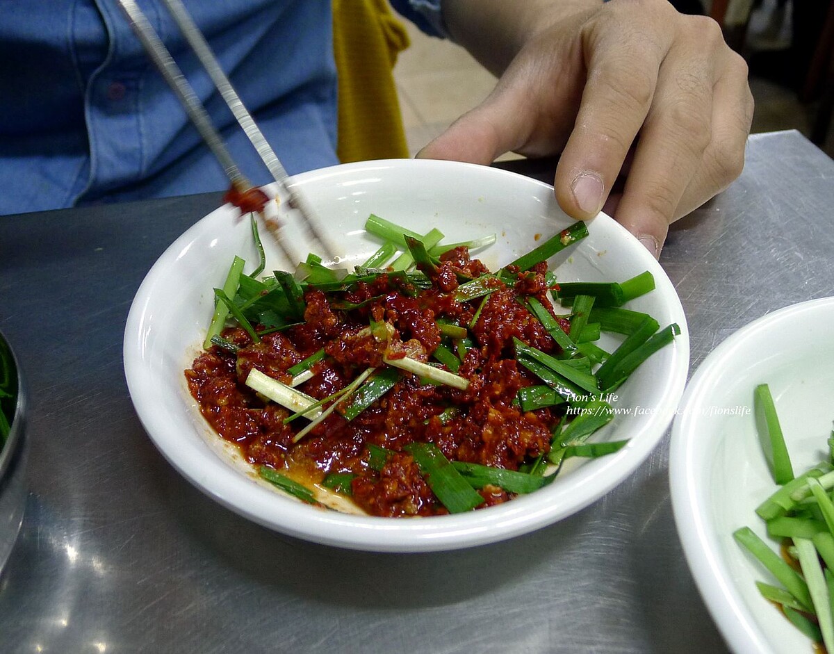 加上大量的韭菜後攪拌(韭菜為選擇性,並非每間店家皆有)