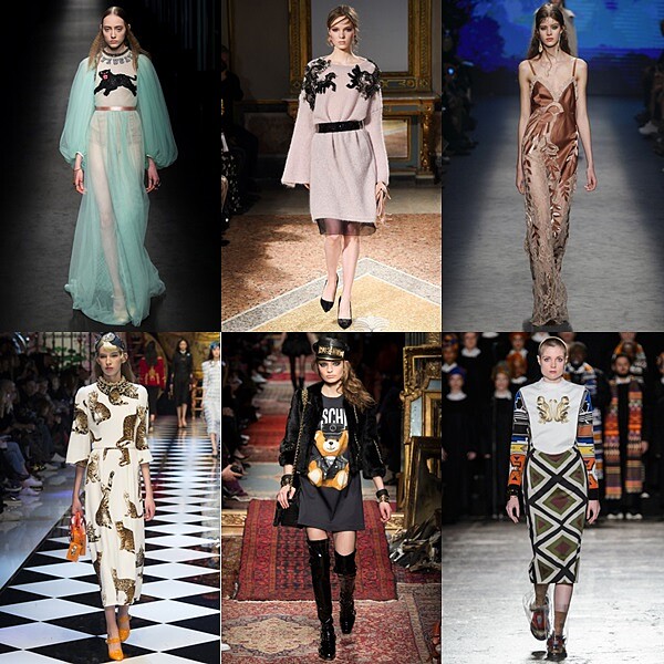 剛剛說過了花卉或是皇室風格的刺繡,其實米蘭這一次還悄悄地把動物園搬到洋裝上了呢!這一波俏皮童趣奇想風格的始祖自然是來自Gucci,這一次也端出了可愛版的蛇、老虎還有黑豹;而Moschino則有可愛的泰迪熊,Dolce&Gabbana則把各種姿態的貓咪放在洋裝上,要貓奴們怎麼辦呢(苦惱)。另外,還有一些比較大膽或是手繪感的印花或是圖騰也都可以趁這個冬天穿出門喔。