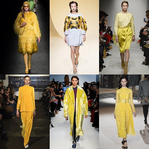 黃色,是非常多變的顏色。可以搶眼、可以性感、可以高調、可以華麗當然也可以有氣質。這個冬天的米蘭把黃色做了千變萬化的搭配與設計,讓不太敢嘗試黃色的你沒有理由不試試看。從各種色調的黃、黑黃相間的條紋格紋、灰黃方格、鮮豔撞色色塊或者是帶有氣質的鵝黃,都是很不錯的單品。但是在穿黃色的時候還是要注意一下自己的膚色啦,如果是比較健康膚色的妳,可能就要特別注意在色調上的搭配,要不然會很容易顯得暗沈喔。