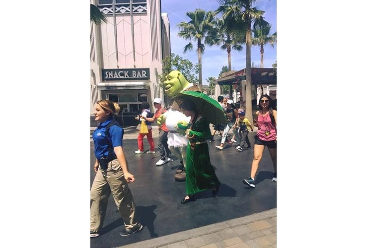 加州的天氣幾乎一年四季都是風和日麗的,紐約去的孩子完全低估他高溫的實力,一到了環球影城第一件事不是買票,是買帽子.... 。進入園區一開始還不是哈利波特的主題樂園,裡面還會看到很多其他主題的人偶像是史瑞克夫妻檔.jpg)
