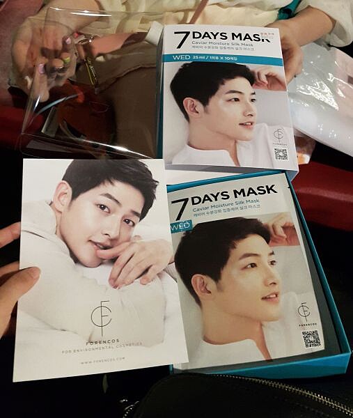 其中粉絲們最想買的,也是我最推薦的,就是Forencos七日面膜。原因很簡單,因為面膜包裝上就印著宋仲基的臉!食物吃掉就沒了;免稅店就算去了也看不到仲基本人;衣服買給老公/男友穿,只是徒增「原來另一半穿起同件衣服跟劉大尉差這麼多」的傷心。不過面膜,卻是送禮自用兩相宜,以後如果變心不想再當宋太太,還可以拆開來敷臉。