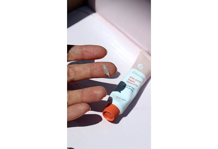 Glossier Coconut Flavored Balm Dotcom 椰子口味護唇膏,可以立即改善嘴唇脫皮狀況。