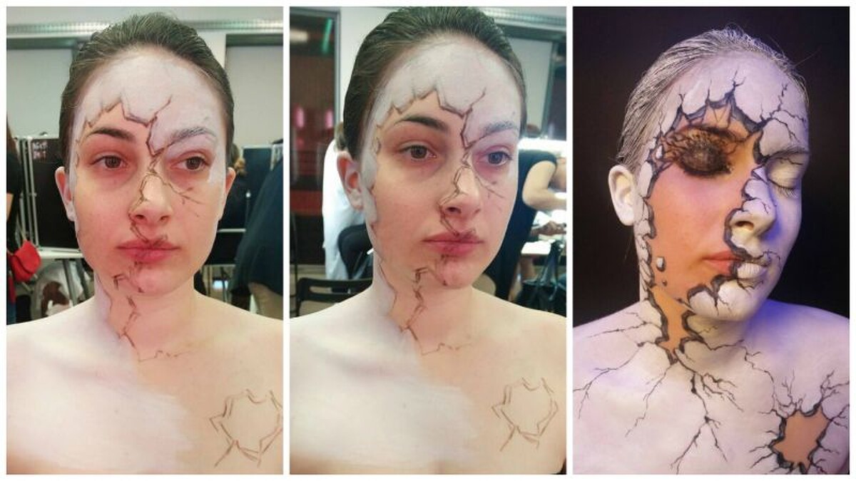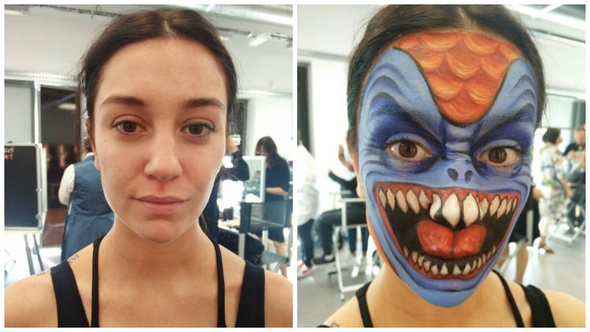 一直從事時尚彩妝和教學工作的Vicky,一向只喜歡美麗的事物,其實對特效和彩繪總是要畫些爛皮爛肉和恐怖醜陋的東西有點排斥。畢竟連長得奇怪的東西都不吃的我,也從不看恐怖和異形片,實在很難一直面對醜陋和恐怖的畫面。