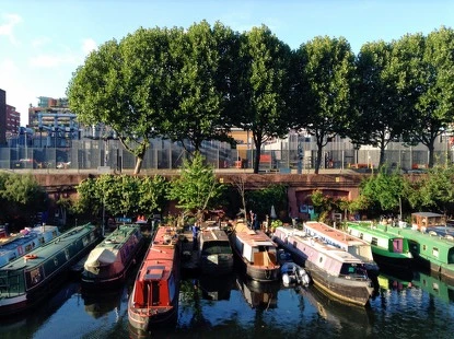 倫敦的運河已經有200多年的歷史,在工業革命時代的運輸上扮演了很重要的角色。現在這些水道如今已經不以運輸為目的在運作,取而代之的是很多以船為家的Boater住在上面。先不去想一個星期要到集中處倒一次排泄物,必須熟知每個區域的充電站、補水站,時間到了還得要動身尋找下一個停泊點等等的麻煩事,住在運河船上的確比住在陸地上便宜許多,也浪漫許多。