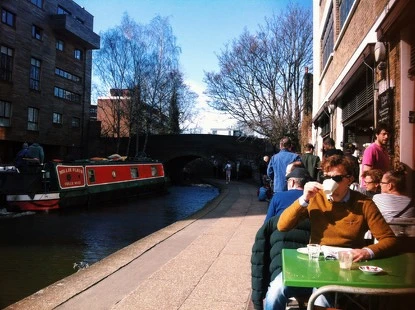 在夏季,為數不少的運河船會搖身一變成為水上咖啡廳,船主自己泡咖啡、烤蛋糕招待客人,邊享用還可以邊聽他們身為倫敦的水上住民的有趣心得,對身旁的水道裡游過的是哪一種魚也無不知曉。很多的運河船上都會養貓養狗,常常看到它們威風凜凜的迎風站在船頂,一副船長的樣子;在通過水道閘門時,船民著忙著操控閘門放水,小狗們就趁機到旁邊乾的陸地上晃一遭,船要通過時閘道時,主人一喊再跳回船上,對它們的水上生活駕輕就熟。