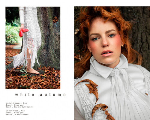 時間敲定之後,尋找模特兒的過程卻一直不太順利。因為我任性的希望能夠由 ginger hair 的紅髮女孩來詮釋妝容(外國模特兒就是可以從不同的膚色、髮色甚至眼珠的顏色都可以任君挑選啊!),光想到和陽光下閃閃發光的紅髮搭配上秋意濃濃的妝容,心中就覺得好激動喔!但 Angelo 陸續提出了幾個臉極具特色的模特兒中,就是找不到我心中的紅髮女孩。時間慢慢逼近,只好先選擇一位髮色較淺的模特兒。在拍攝的前一天,突然 Angelo 興奮的告訴我他找到我要的紅髮女孩了!我一看,馬上請他把 Johanna 訂下來唷!