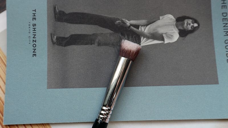Sigma的這支遮瑕刷造型非常奇妙,是個兩面斜下的山形形狀,但是剛剛好可以符合眼下與鼻側需要遮瑕的地方。因為刷毛非常密,所以比起一般扁狀的遮瑕刷,比較不會有刷痕,且適合用在液狀的遮瑕膏,可以非常方便的暈開。