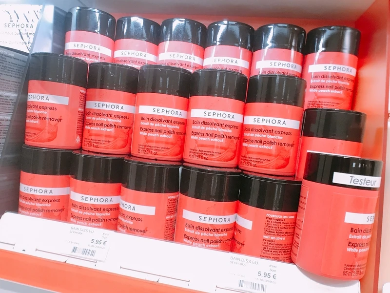 除了販售許多彩妝品牌之外,Sephora也有一系列自有品牌商品,其中這罐卸甲去光水用來卸指甲油非常方便。瓶身裡有海綿設計,只要將手指伸進去轉兩圈就能輕鬆卸掉指彩。