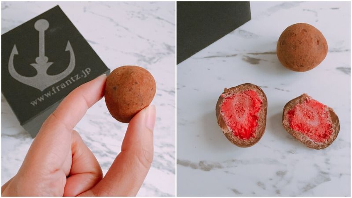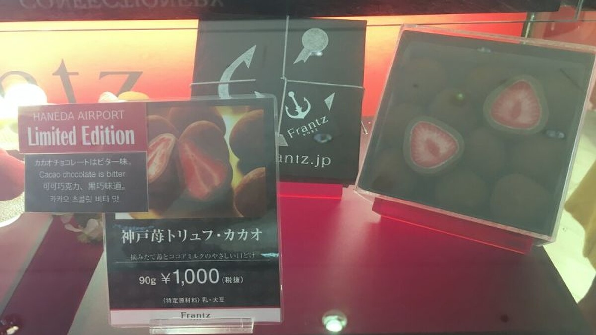 來自神戶的Frantz,以草莓巧克力最出名,而在羽田機場中特別販售了限定的黑松露巧克力版本。包裹在黑巧克力中的是一整顆完整的草莓。