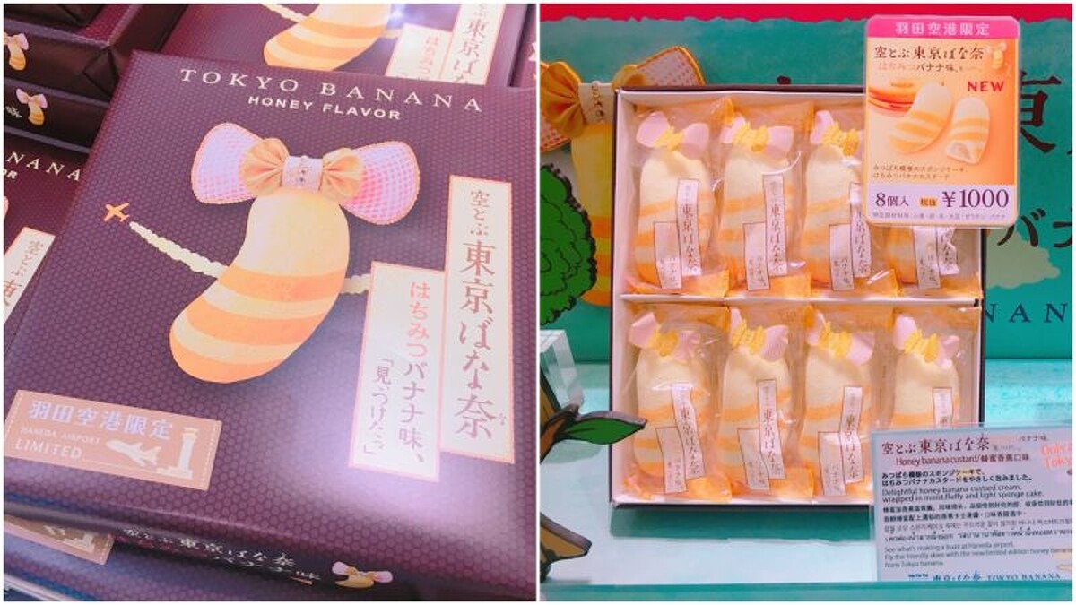 而在羽田機場裡,還可以買到專屬機場的限定版「會飛的東京蜂蜜香蕉」,外盒上多了一架小飛機圖案非常可愛,餡料的卡士達醬中除了香蕉,也多了蜂蜜香氣,香甜而濃郁。