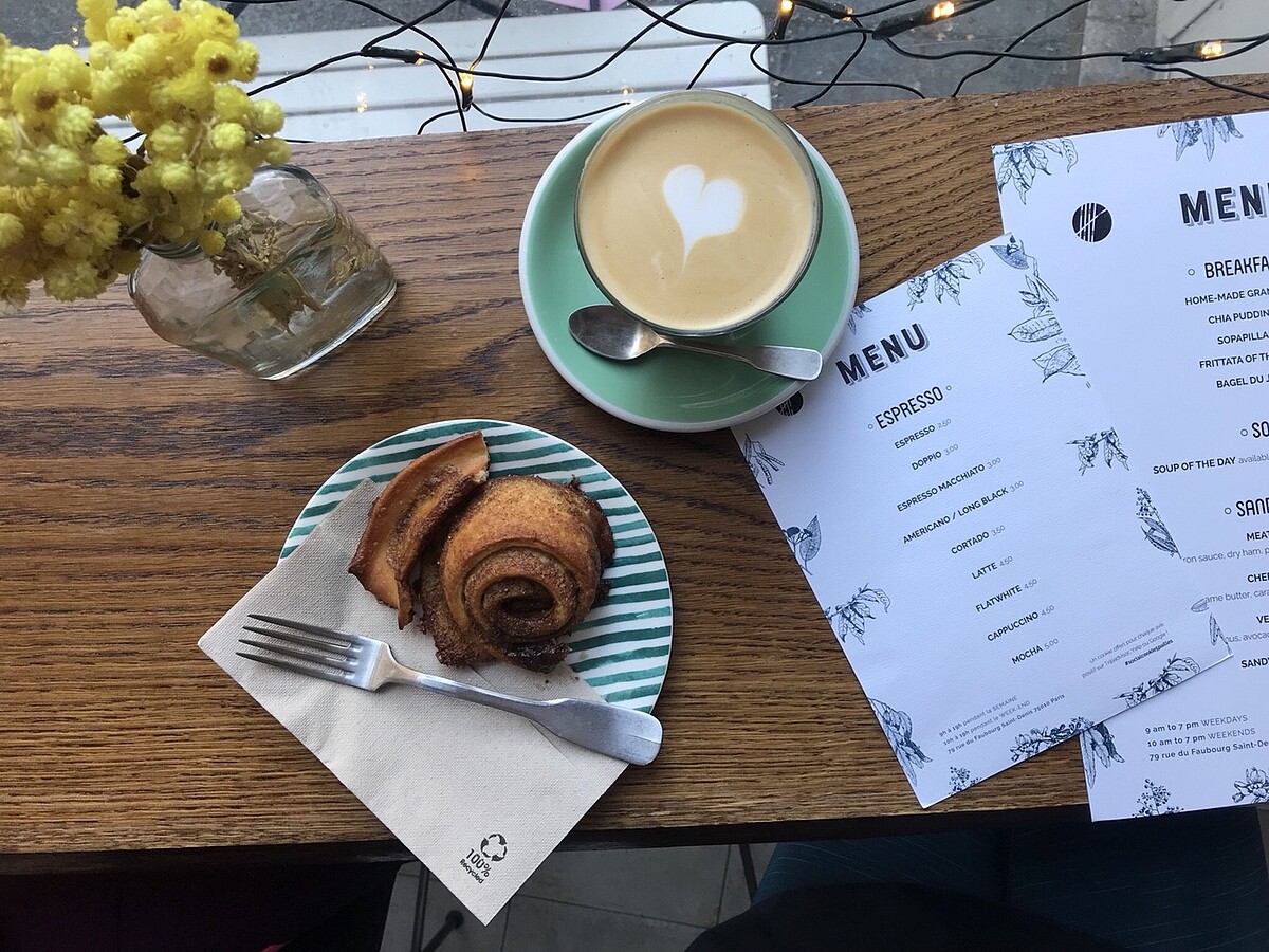 出國的樂趣之一,就是不特意安排行程,隨找隨走,可能會有意想不到的驚喜。 這次時裝周前,我已先到巴黎,工作之餘的時間,我到塞納河邊上散步,享受冬季的暖陽,但寒風吹襲下,腦子突然覺得此時此刻能喝上一杯熱咖啡,在配上甜點,一定會很幸福,於是用手機在地圖上搜尋附近評價不錯的咖啡店,就讓我擁有了一個美好的下午時光。 選擇的條件是,一般我會先看網路上分享的圖片,再看評價,反而我對很太漂亮太包裝的店,沒有太大興趣;這間店的風格讓我覺得很隨性,也很多當地年輕人會選擇這裡,甚至購買咖啡豆,讓我覺得很自在舒服,所以我點了一杯咖啡和一塊店員推薦的抹茶起司蛋糕,端到店門坐,看著絡繹不絕的排隊人潮,我卻獨自一人享受巴黎近黃昏的景色,頓時有種滿足感。 X (待確認店名) 出國在外,大多數的人都習慣也喜歡吃家鄉菜和亞洲食物,思鄉情懷和口味問題,但在我身上,反而沒這樣的困擾,對入境隨俗接受度非常高,相對的,我偏愛西式料理。 歐美國家對於有機食物和輕食料理很講究,選擇也很多;我本來想介紹一件有機小餐館,它的食物以各式穀類雜糧為主,調味也非常清淡,幾近食物的原味,但一般很少人像我吃的這麼清,所以這裡介紹另一家我也很喜歡的健康食物,以Tapas的形式為主,稍微口味重了(應該說鹹度適中),但廚師加了異國風味來做口味上的混合創新,所以味道非常的融合,尤其是花椰菜這道,不要被焦黑的外表嚇到而不敢吃,它是我最推薦的一道小食。 我和朋友點了一道主食,其他選些小食做搭配,這樣的食物選擇是我最愛的,因為可以吃到很多味道,又不會吃不完,非常符合我嚐鮮的個性。 在這家店,不用擔心語言問題,店員的英文非常好,而且非常的熱情介紹每一道食物的內容,聽店員說,晚上基本上都要排隊,而且也能小酌,可見巴黎人多愛這類食物的小餐酒館。