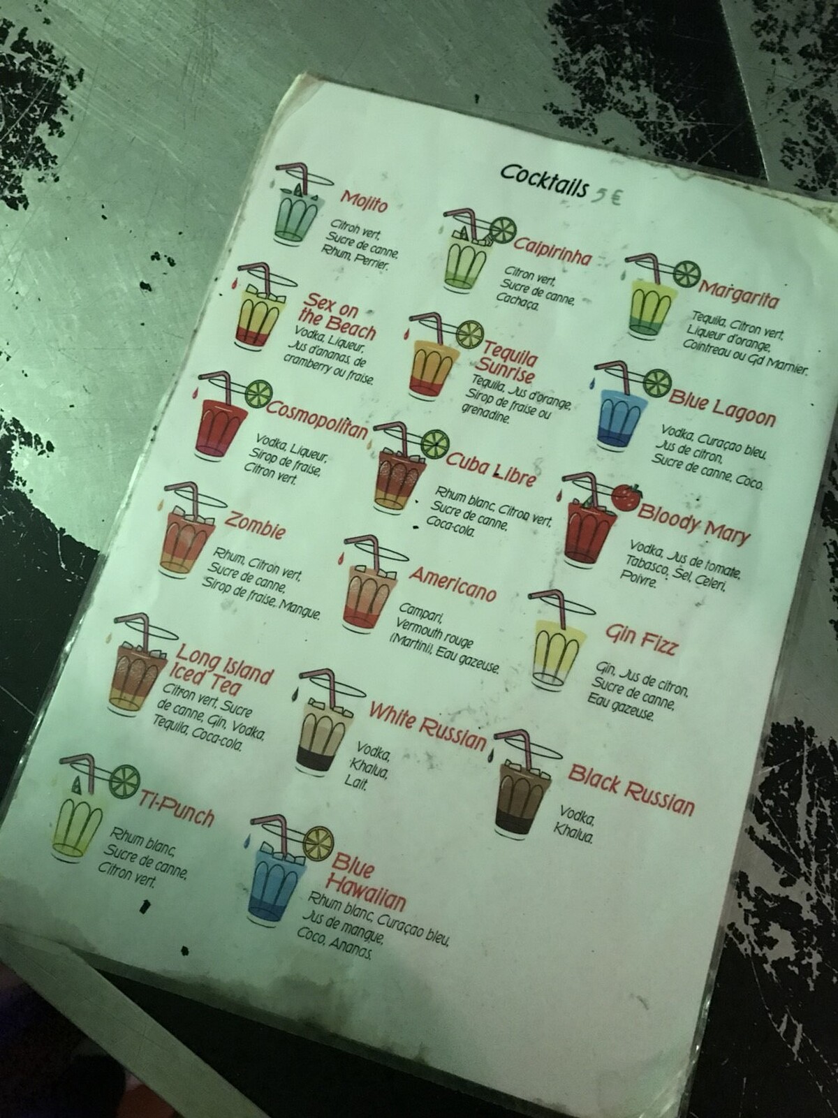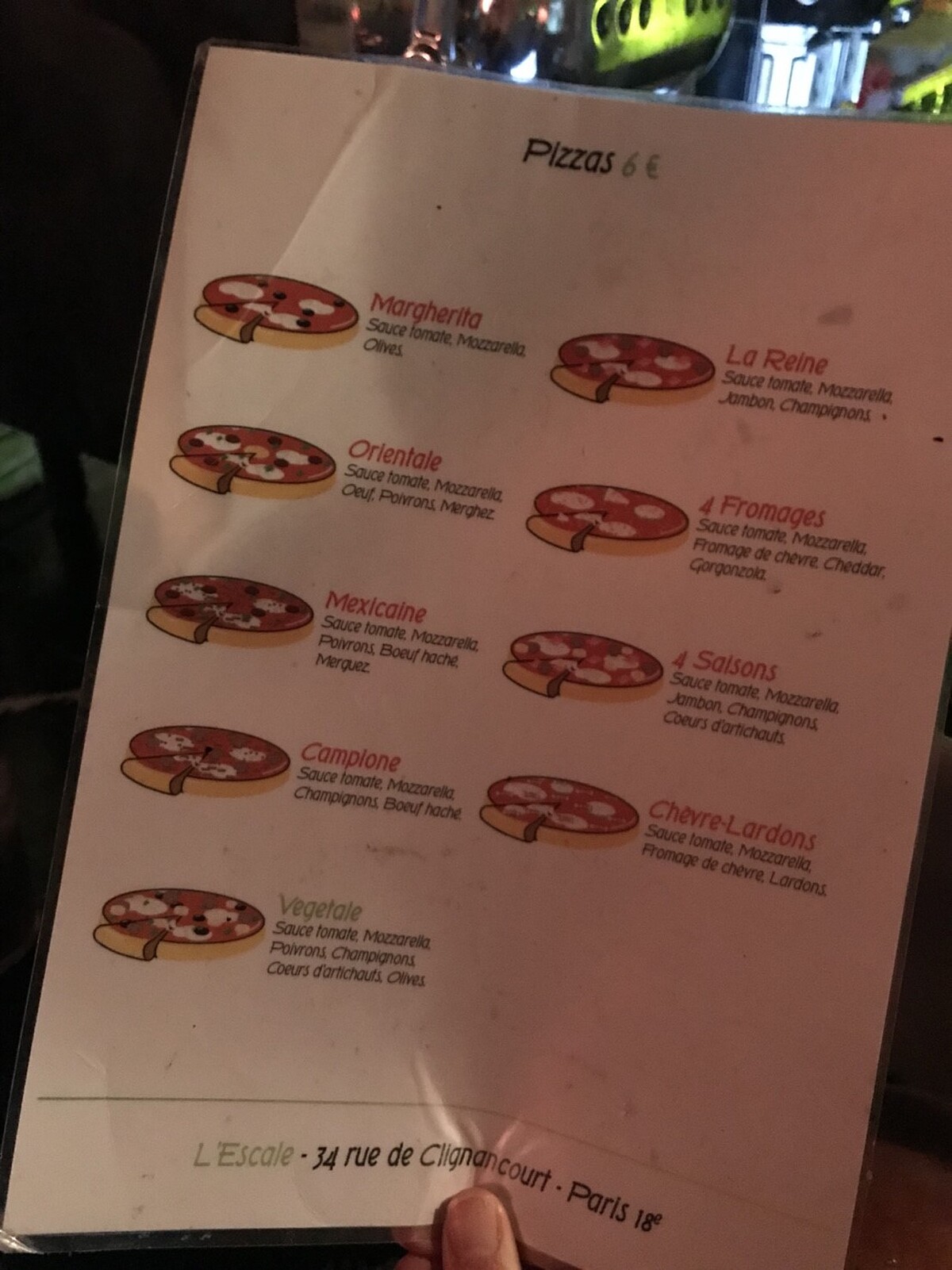 這家地點位在巴黎聖心堂附近,一般看到聖心堂的印象就是不安全,特別是晚上別到這裡,但這條斜坡上很多小餐館與酒吧,很多年青人愛去,所以價錢也不會太貴,又能感受到巴黎生活的氣氛。 去這家店前,朋友有提議另一家較為舒適,但我想體驗local bar的氛圍,那種站著聊天喝酒,環境較為陽春的裝潢,酒也便宜;在朋友再三強調下,我還是選擇體驗它,果然沒讓我失望。 我喜歡它無拘無束的感覺,酒保調酒也非常的豪邁,像是不用錢似的,加了很多酒很多料,雖然味道跟店家風格很像,走一個不拘風格(可想而知它的味道不太精緻,哈哈),但聚會聊天的氣氛非常好,店裡有提供披薩,能邊喝酒邊打牙祭,而且不難吃唷,也可以在這裡粗糙的解決晚餐與小酌時光,一舉兩得。